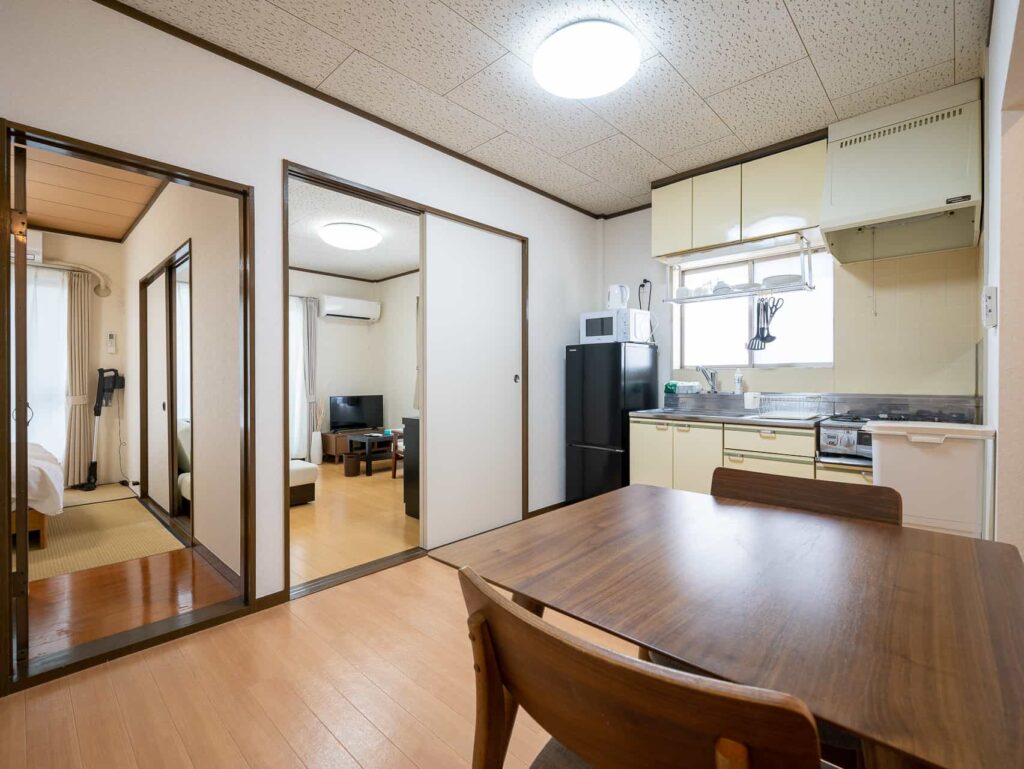 301号室 301号室 #和洋室 #35m²/1人〜4人 #バス・トイレ付 #禁煙 #インターネット可 #寝室2部屋、ダブルベッド1台 #布団/床用マットレス2枚 #バスルーム1室 (バスタブ数1) 部屋詳細を見る