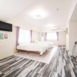 #和洋室 #43m²/1人〜4人 #バス・トイレ付 #禁煙 #インターネット可 #寝室1部屋、ダブルベッド2台 #バスルーム1室 (バスタブ数1)