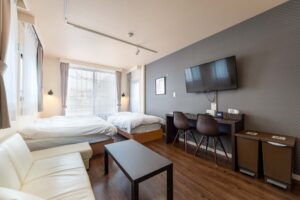 2020年1月に完成した新築アパートメントホテルです。平和島は羽田エリアにあり、空港まで電車でわずか10分、品川まで電車で10分、横浜まで電車で21分で立地がとても良いです。平和島温泉のあるBIGFUN平和島は、宿泊者にとても人気のスポットです。自然も豊かでビーチのある大森ふるさとの浜辺公園、城南島海浜公園は地元の人の憩いの場所です。カップルから家族まで幅広くお楽しみ頂けます。